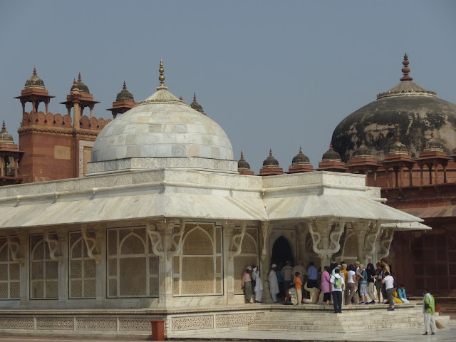 Nous avons visiter fathpurshikaree ,,, je vais reverifier l epellation ,,,c est un chateau construit par un Tsar qui avait 3 epouses ,, une hindu , une musulman et une chretienne ,,, j imagine que c est bien de plaire a tout le peuple pour rester au pouvoir ,,,, c est immense et tout autour , il y a encore plus de ruines ,,, donc ,, Michel et Moi avons sortis des sentiers battus ,,,