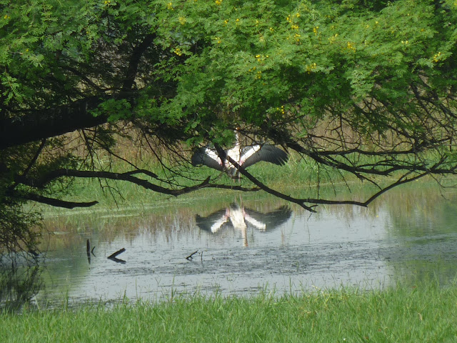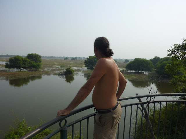 les vehicules motorise sont interdit dans le parc ,,, Pour notre retour ,,, nous avons donc profiter d un rickhaw ( un genre de tricycle q un homme Indien en turban pedale pour nous amener ou nous voulons aller,,,,,,,,,,,il etait super sympatique et il est aussi un guide pour nous montrer d autres oiseaux apercu en chemin ,,, c est son oeil de lynx qui a apercu les chacals ,,,,