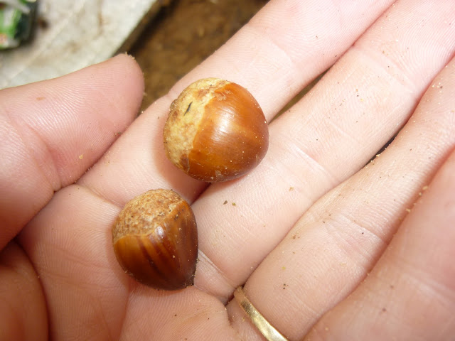 des noisettes ( j ai enlever l ecorce verte ) maintenant il faut les cuire....