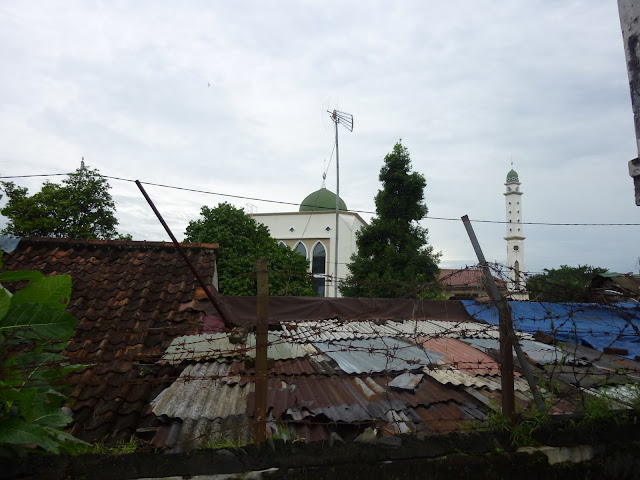 la vue de notre balcon ( la mosquee ) au centre de l image ( le haut-parleur )