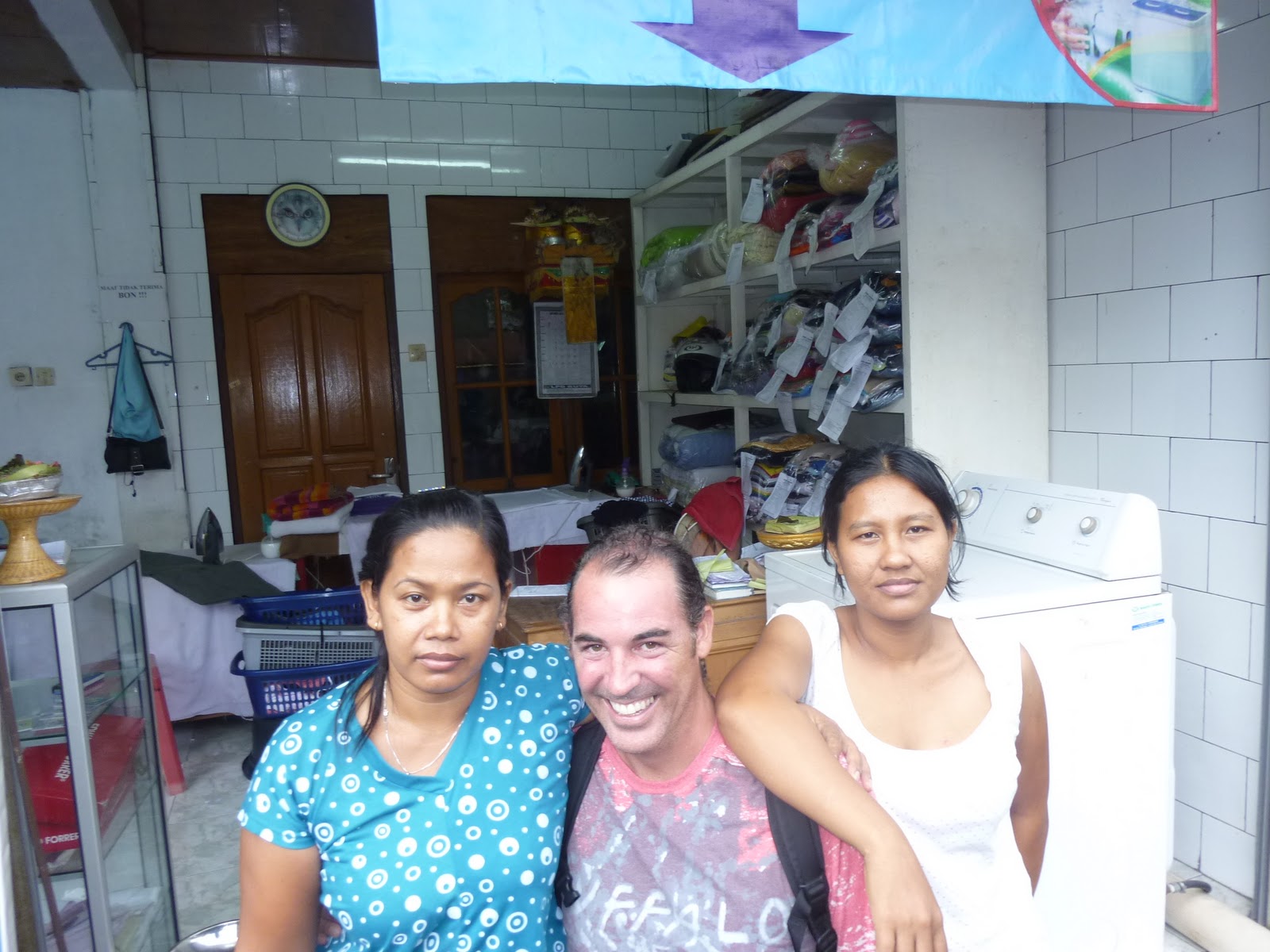 un commerce a Bali ,, ouvert sur le troittoir ,, elle font ma lessive , 3 $ pour 4 kilo de vetement ,,, repasser en plus