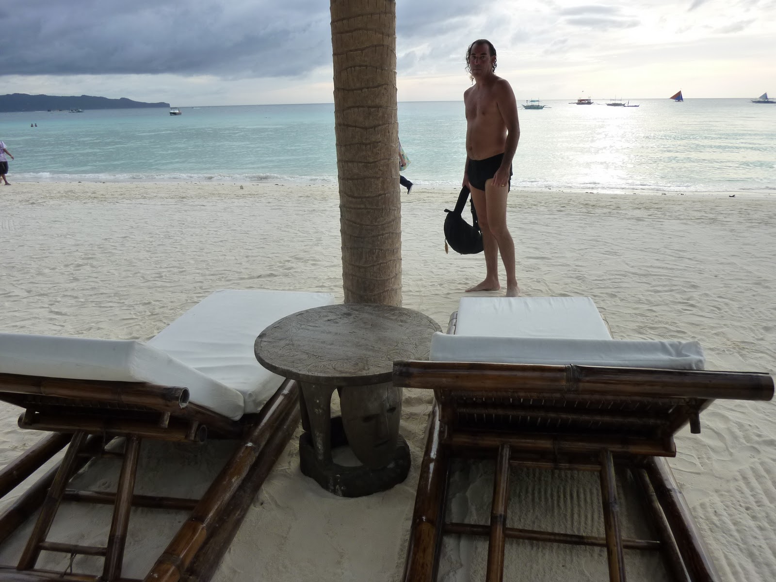 on ne pouvait pas s allonger ,, c est priver ,,, le parasol est un palmier ,,, c est beau la vie des gens riches ,,, la notre est aussi belle avec Michel qui porte son baluchon